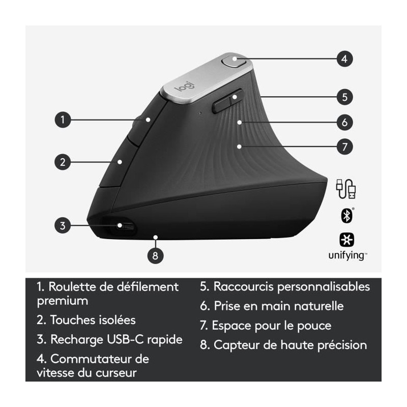 Souris Ergonomique - Sans fil - LOGITECH - MX VERTICAL - Graphite