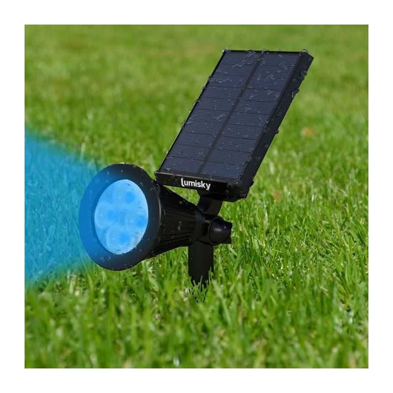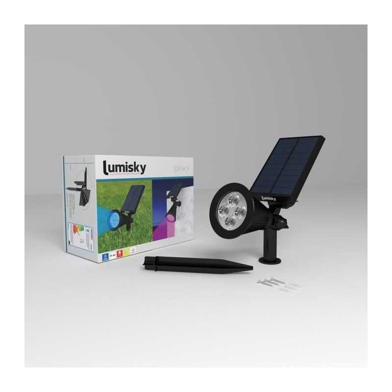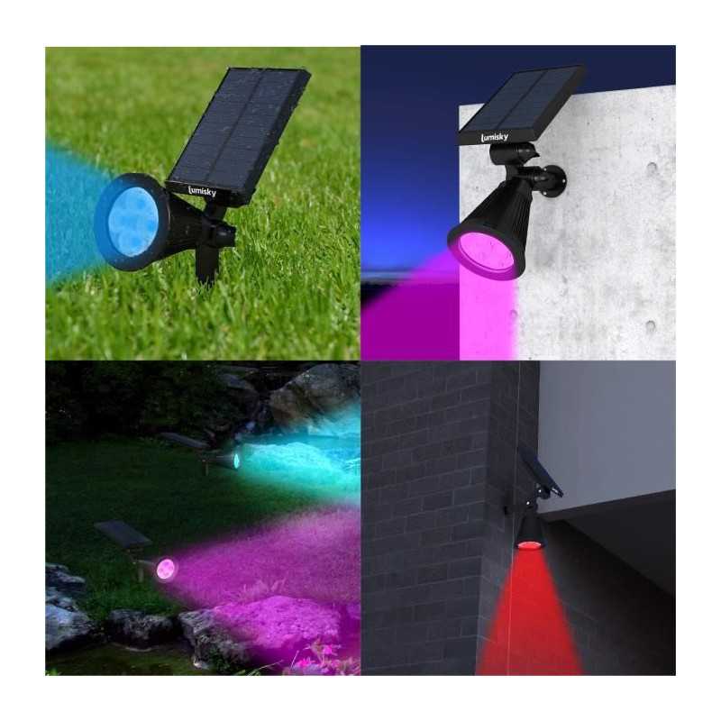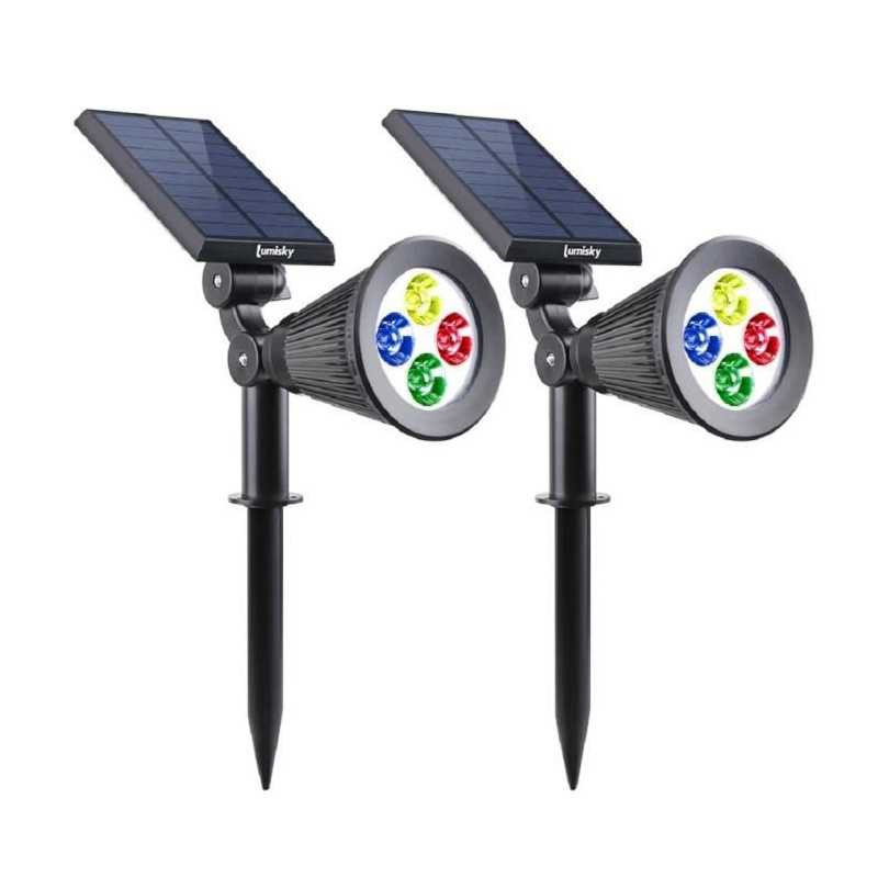 LUMISKY Pack de 2 Spots solaires extérieur étanches - 4 LEDs colorées - 200 Lm - Tete pivotante a 90°C