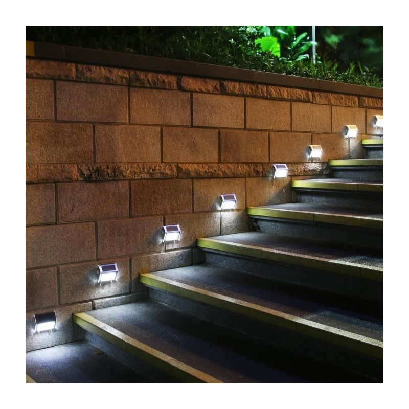 Pack de 2 spot solaire extérieur étanches - 3 LEDs blanches - Autonomie : 8 h - a fixer sur un mur - Dispose de 2 modes d'éclairage: faible / puissant - Idéal balisage - Bouton : On / off - Mis en marche automatique - Equipé de panneau solaire - Eclairage de sécurité