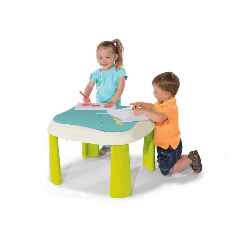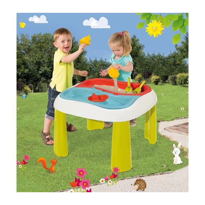 La table de jeux extérieure est idéale pour les petits espaces ! Vos enfants pourront jouer simultanément avec de l'eau et du sable grâce aux 2 bacs amovibles ! Traitée anti-UV, cette table est faite pour durer dans le temps ! A partir de 18 mois - Fabrication française.