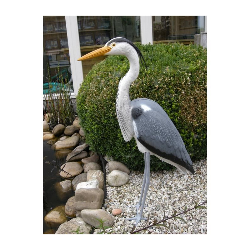 Agrémentez votre jardin ou votre point d'eau avec ce Héron cendré en résine - 2 piquets de fixation au sol inclus - Hauteur : 87 cm