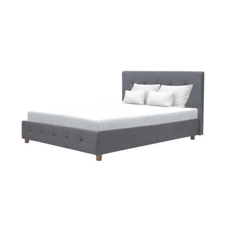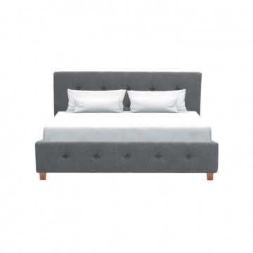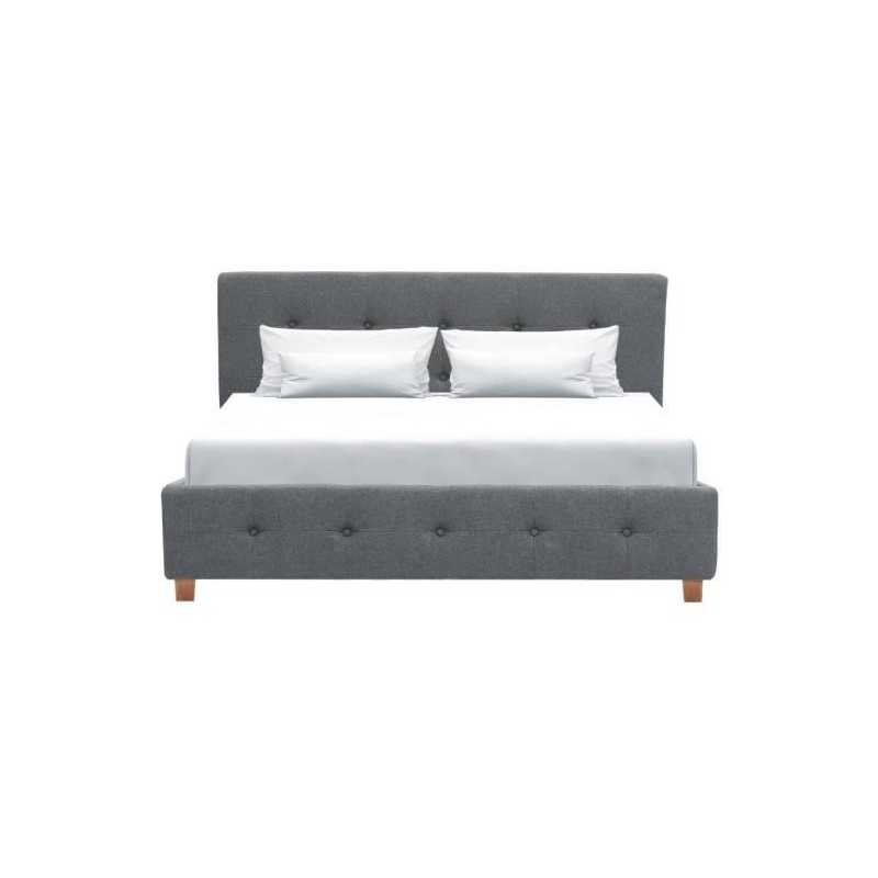 CHARLIE Lit adulte - Tissu aspect lin gris foncé - Sommier inclus - 160 x 200 cm