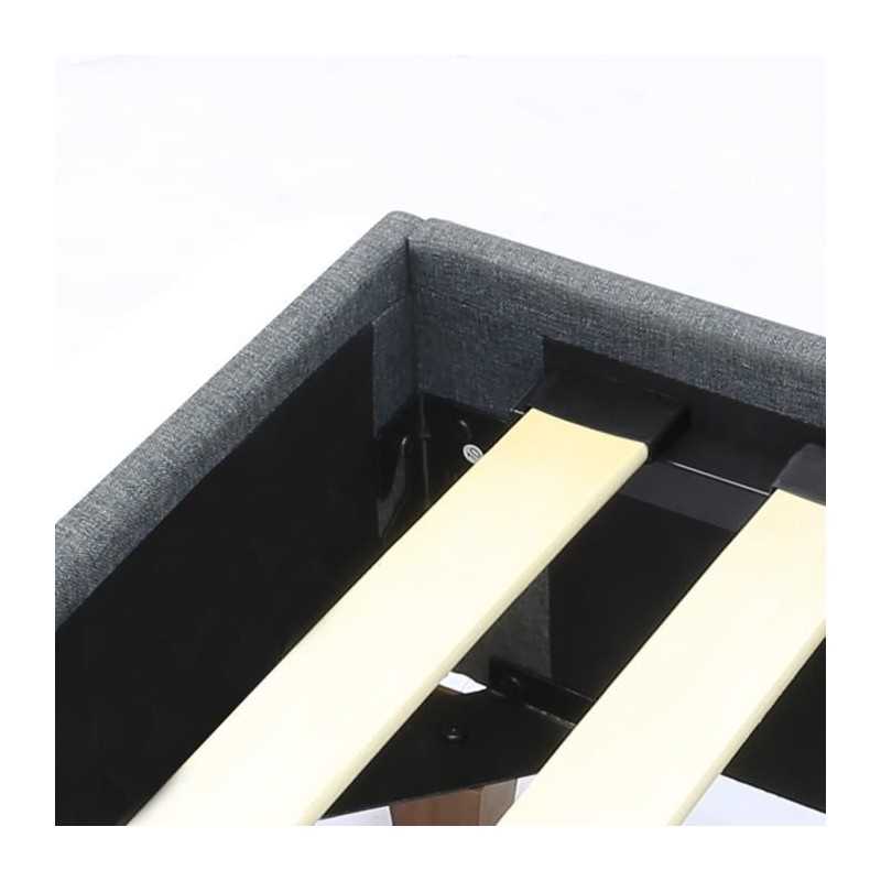 CHARLIE lit en 1 colis en tissu imitation lin avec sommier lattes en bois, coloris gris foncé