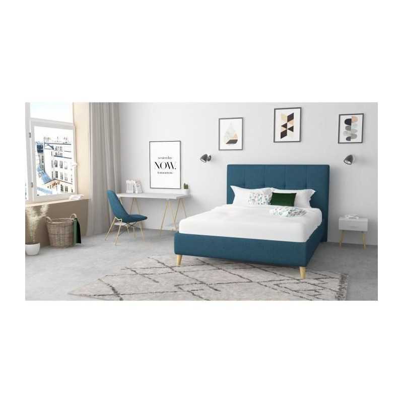MAO Lit adulte contemporain mélaminé noir et décor chene...