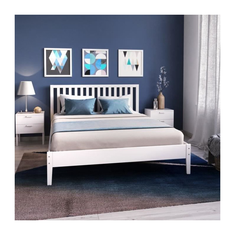 SVEA Lit adulte 140x190 cm - Scandinave - Tissu Gris...