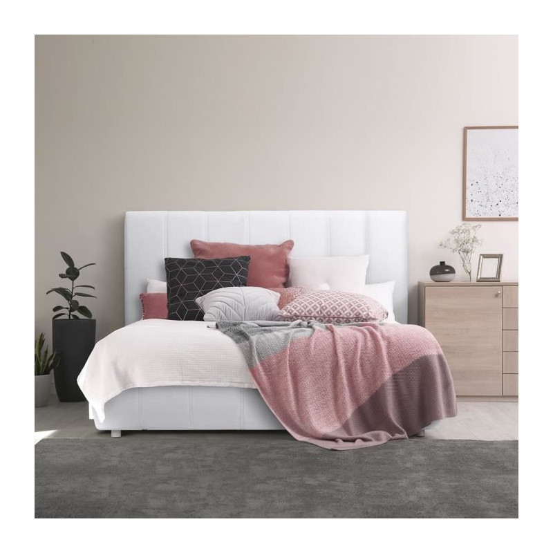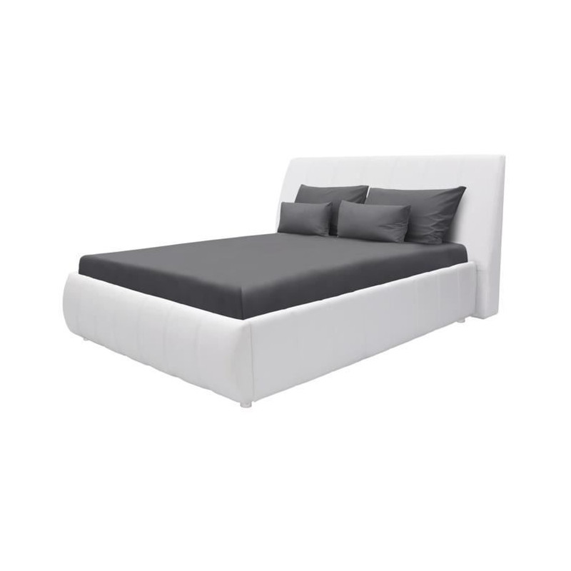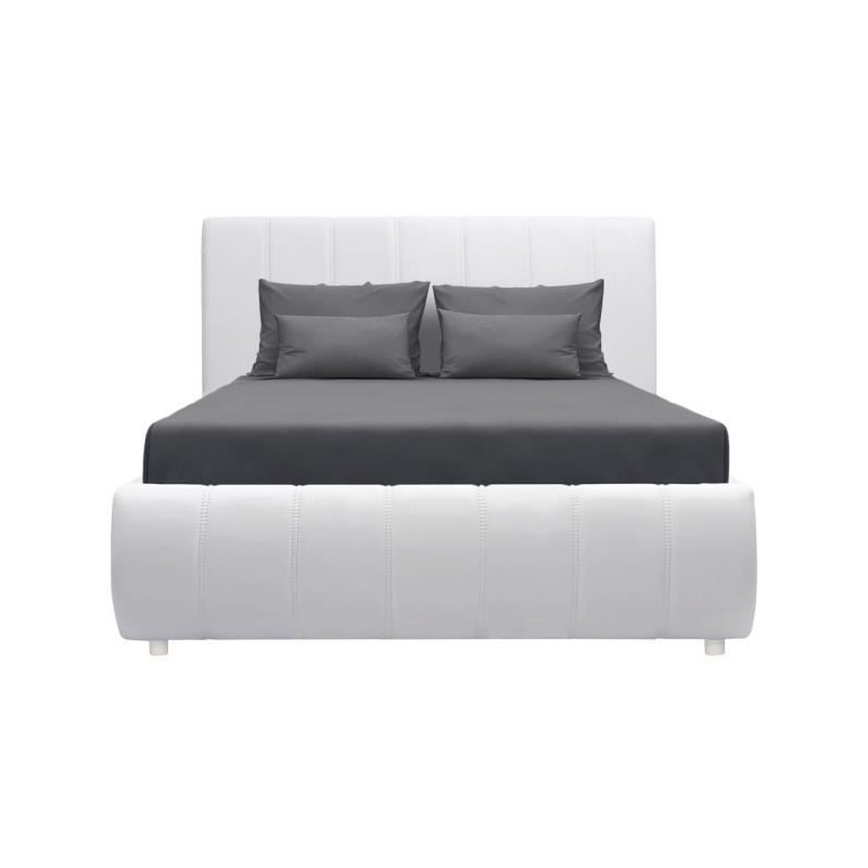 Lit adulte BOSTON 160x200 - Décor blanc - Fabriqué en France