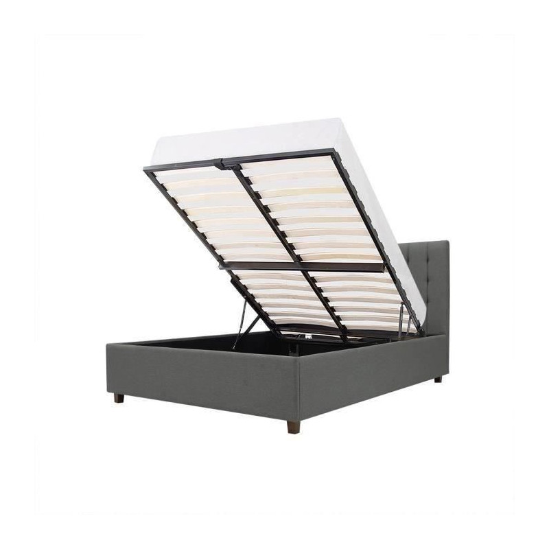 Lit coffre adulte EMILY - 160 x 200 cm - Tissu gris foncé - Sommier inclus