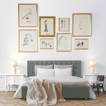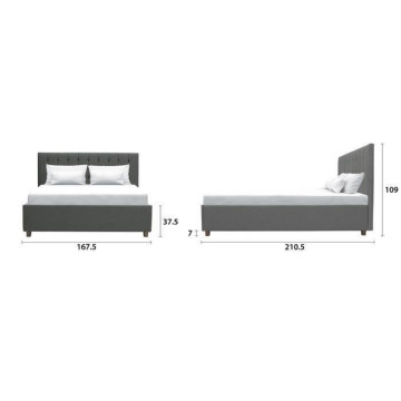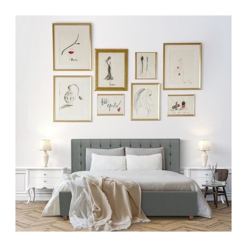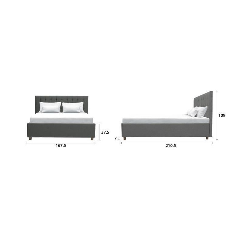 Lit adulte NAILHEADS - 140 x 190 cm - Tissu - Gris...
