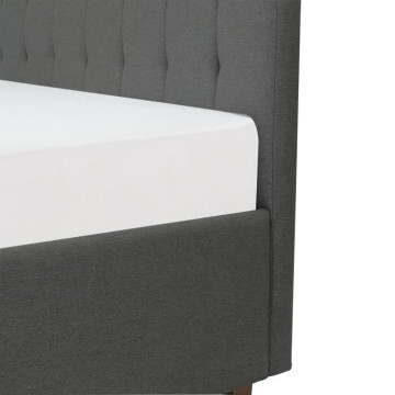 EMILY lit en tissu imitation lin avec sommier lattes en bois et coffre de rangement, coloris gris foncé