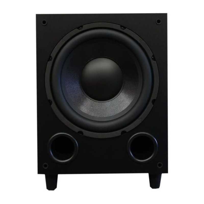 Caisson de basse - Haut-parleur de 25 cm - Membrane en fibre decellulose traitée - Fréquence minimum : 25 Hz - Réglege de phase : 0 ou 180° - Réglage automatique du signal entrant - 2 entrée RCA - Puissance maximale : 600 W - Dimensions : 30 (L) x 36 (H) (41 avec les pieds) x 41,5 (P)