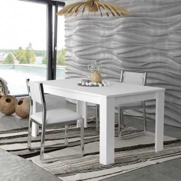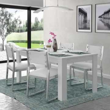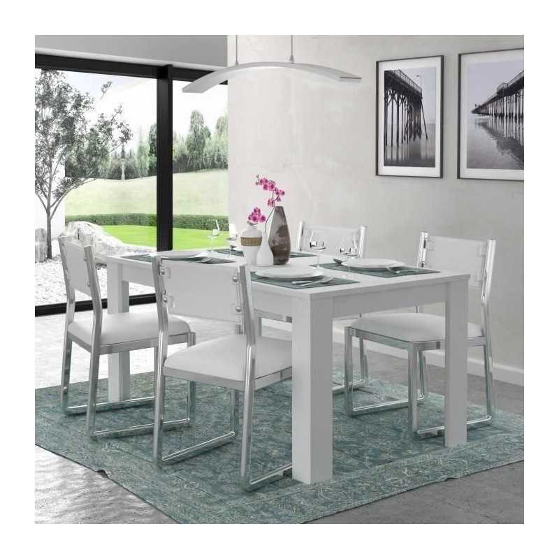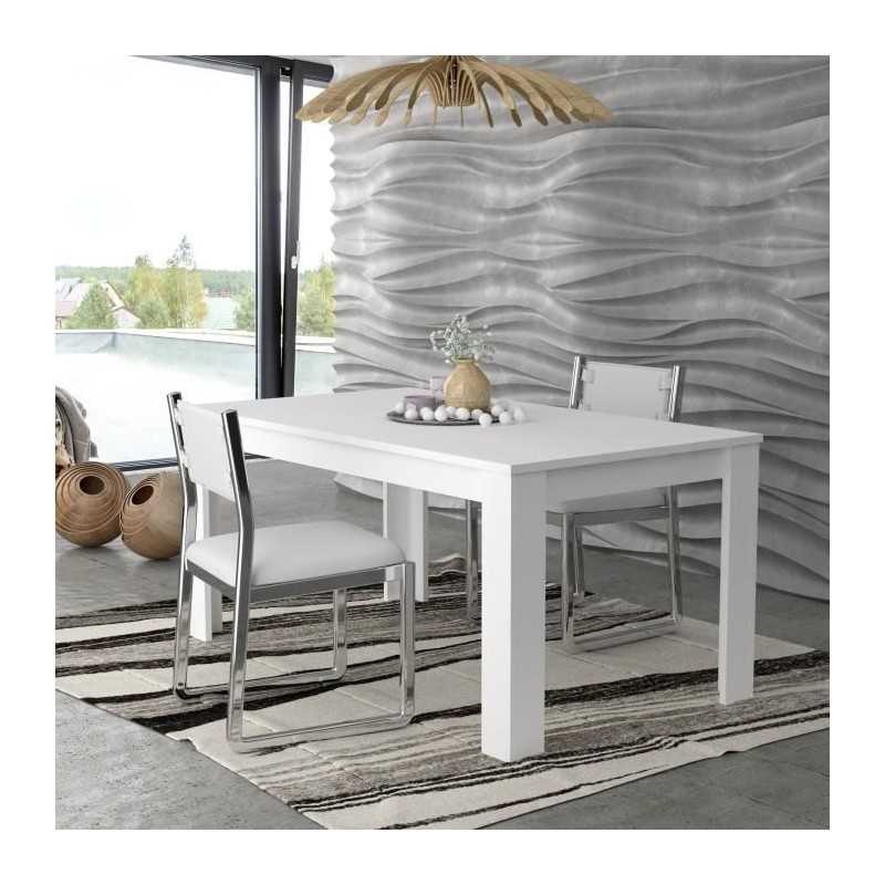 KOVA Table a manger - 6 personnes - Structure en panneaux de particules - Blanc mat - Fabrication européenne - Dimensions : 160x90x74,7 cm.
