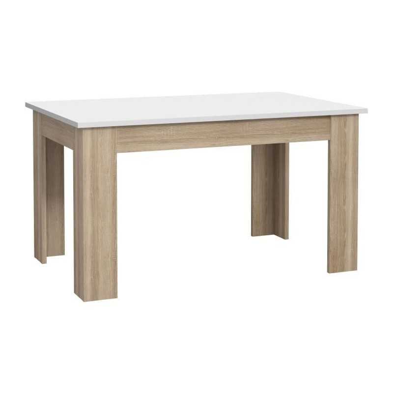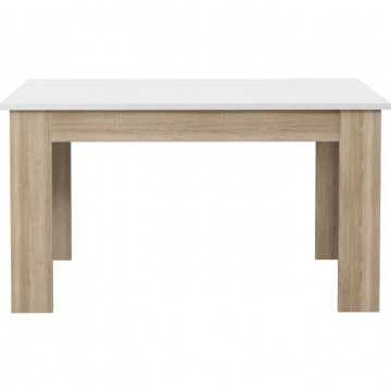 La table à manger Pilvi est un meuble élégant et pratique. Sa structure en bois de chêne sonoma et son revêtement blanc lui donnent une allure moderne et intemporelle qui s'intégrera parfaitement à votre décor. Avec ses dimensions de 140 x 90 x 75 cm, elle offre suffisamment d'espace pour accueillir jusqu'à 6 personnes. Son design épuré et sa finition soignée en font un ajout idéal à votre salle à manger. La table à manger Pilvi est robuste et durable, ce qui en fait le choix parfait pour votre maison.