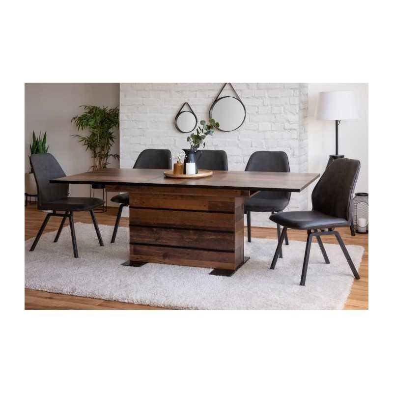 Table Manhattan Cette table a manger Manhattan est extensible de 160 a 200 centimetres grâce a une allonge de 40 centimetres qui vient se loger en dessous du plateau lorsqu'elle n'est pas utilisée. Cette table pourra donc accueillir jusqu'a 10 convives lors de vos diners. Avec son coloris boisé Old Style, elle sublimera un intérieur au style industriel. De plus, elle est fabriquée en Union Européenne, gage de qualit
