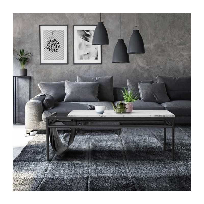 Table Basse 1 porte - Blanc - L 110 x P 60 x H 42,5 cm -...