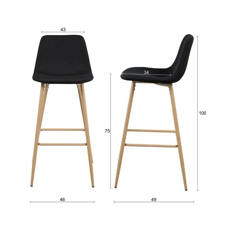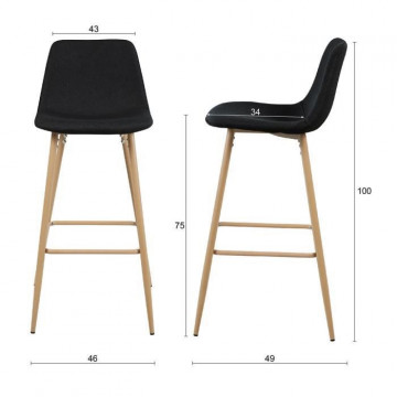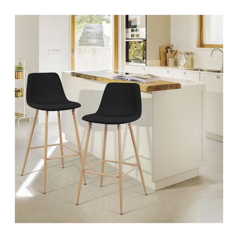 Lot de 4 tabourets - Noir - Pieds métal peinture bois - L...
