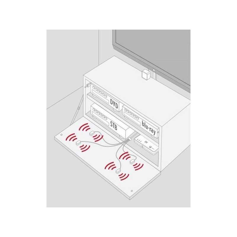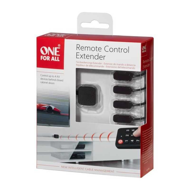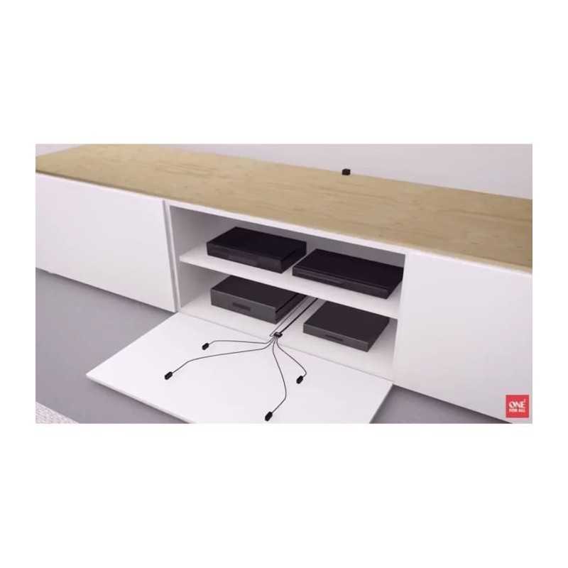 Le répéteur One For All est la solution idéale pour contrôler vos appareils audiovisuels a technologie infrarouge, situés dans un meuble fermé. Le design innovant du répéteur permet de bénéficier d'un systeme de gestion des câbles intelligent. Ainsi, vous pouvez placer tous vos appareils dans un meuble fermé et libérer de l'espace dans votre salon.