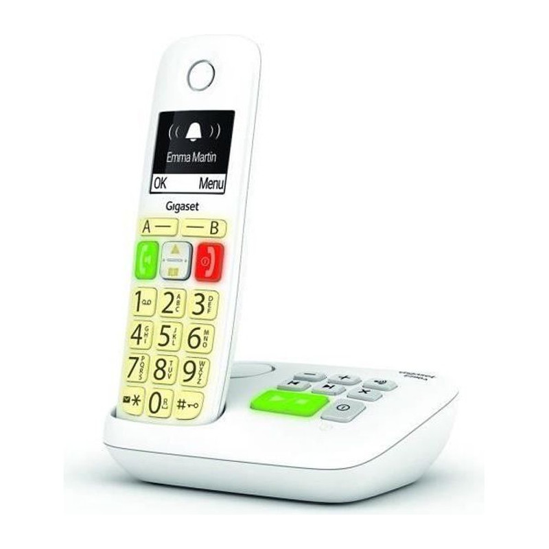 GIGASET Téléphone Fixe E290 A Blanc - Répondeur numérique intégré avec jusqu'a 20 minutes d'enregistrement - Ergonomie et clavier larges touches pour un confort maximum - Grand écran (34 x 37 mm) rétroéclairé noir et blanc display avec contraste accru - 2 touches d'acces direct - Mode Audio Boost pour un volume encore plus fort - Conçu et fabriqué en Allemagne.