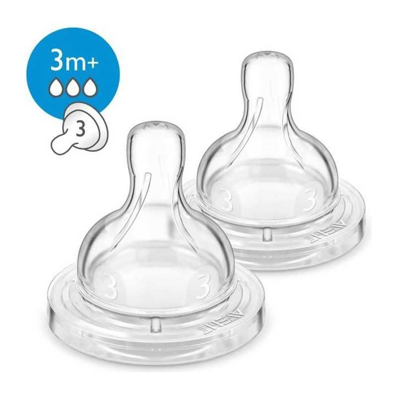 PHILIPS AVENT SCF633/27 Lot de 2 tétines Natural - 3 mois et + - Débit moyen (3 trous)