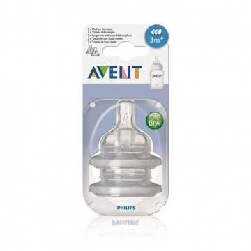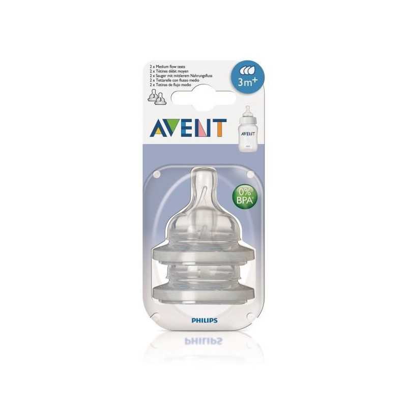 Lot de 2 tétines Avent Anticolic - 3 mois et plus- débit moyen 3 trous - Silicone sans BPA - col Large Votre bébé contrôle le débit de lait, ce qui permet d'éviter les exces et les régurgitations. Un systeme anti-coliques perfectionné avec double valve, unique et flexible, laisse l'air pénétrer dans le biberon pour une tétée naturelle et active réduisant l'irritabilité et les régurgitations.