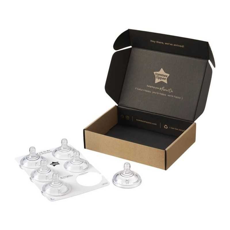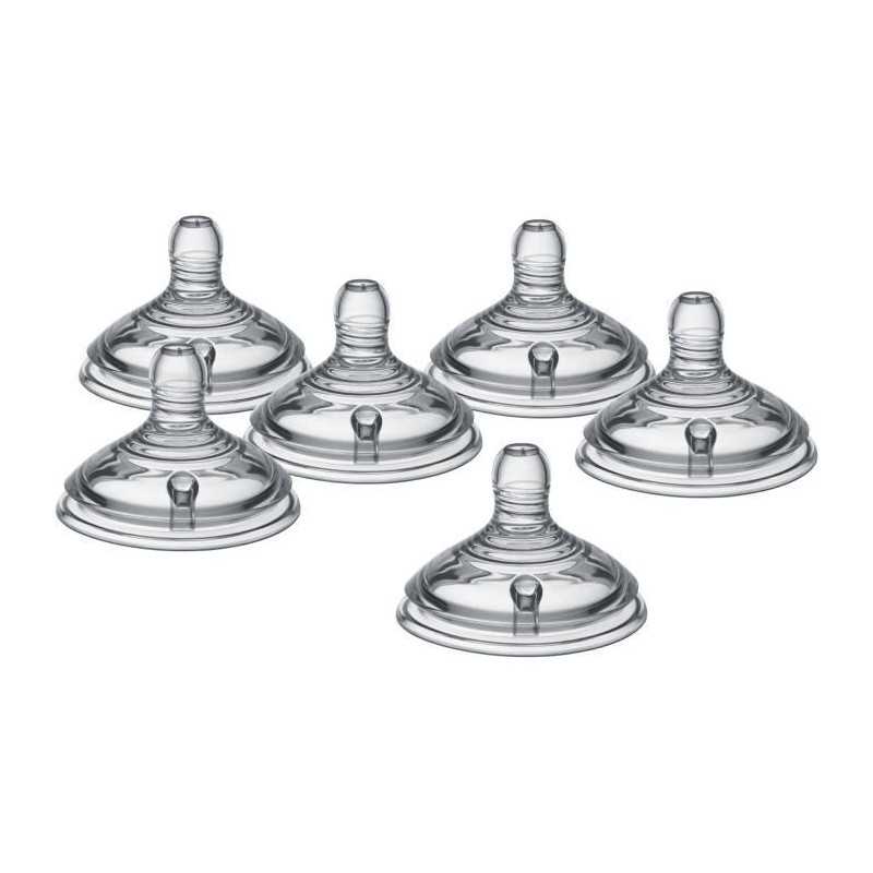 TOMMEE TIPPEE Tétines de Biberon Closer to Nature, Débit Rapide, 6 Mois+, x6