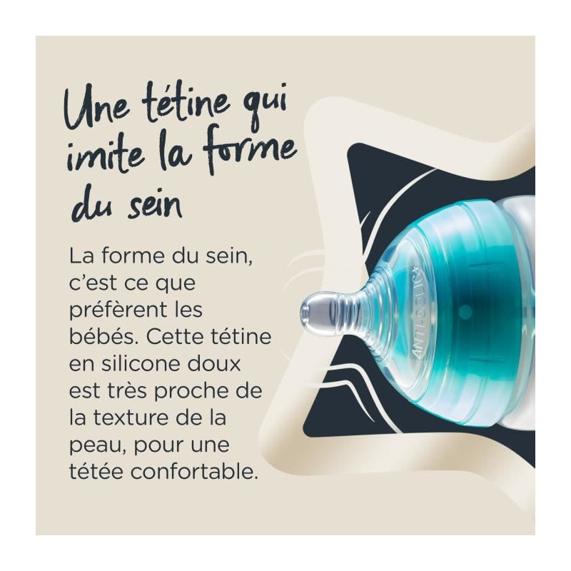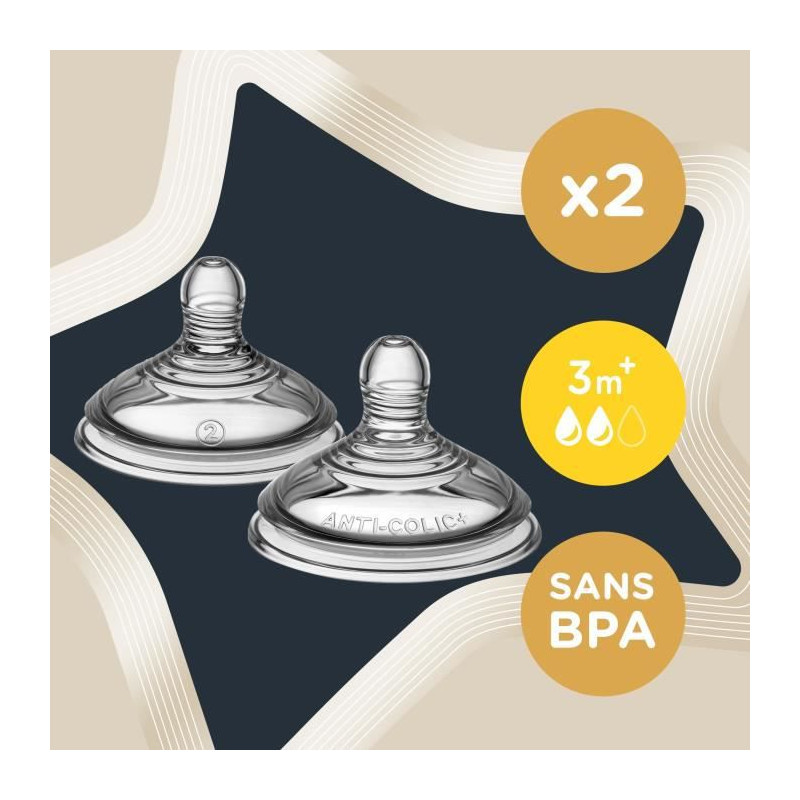Tommee Tippee Tétine Anti-Colique Avancé Débit Moyen Lot de 2 Tétines de Biberon Anti-Colique Avancé, Imitant le Sein Maternel Tétines anti-coliques Tommee Tippee conçues pour etre utilisées avec les biberons anti-coliques Tommee Tippee. Les tétines sont dotées d'une technologie avancée unique qui réduit les symptômes de coliques tout en favorisant une position confortable pendant l'alimentation au biberon.