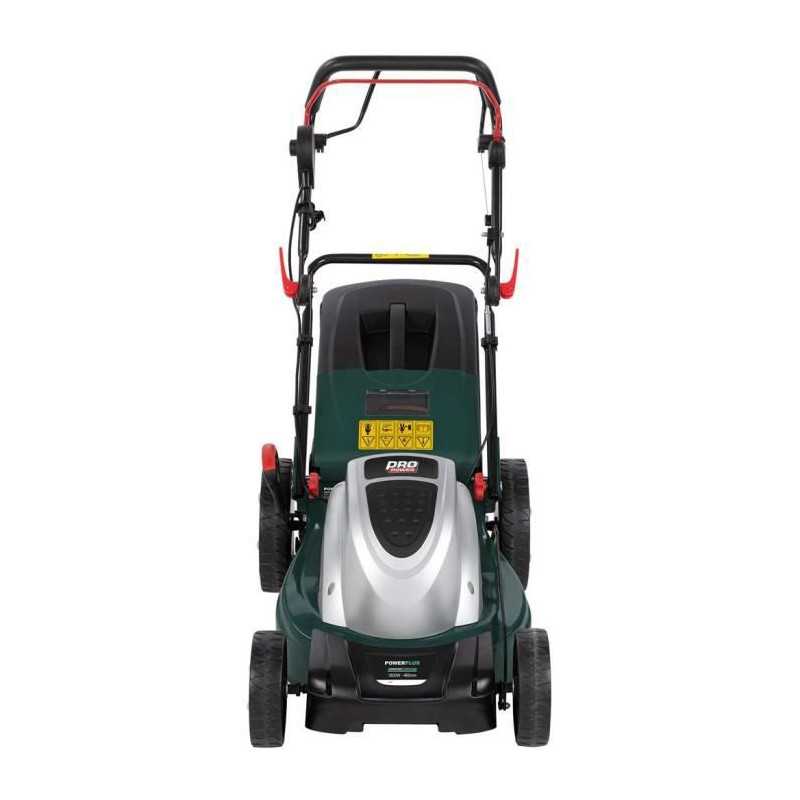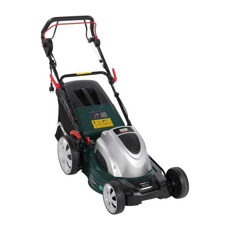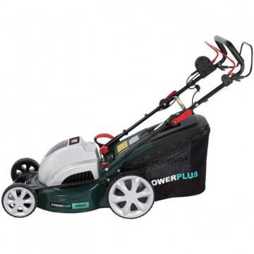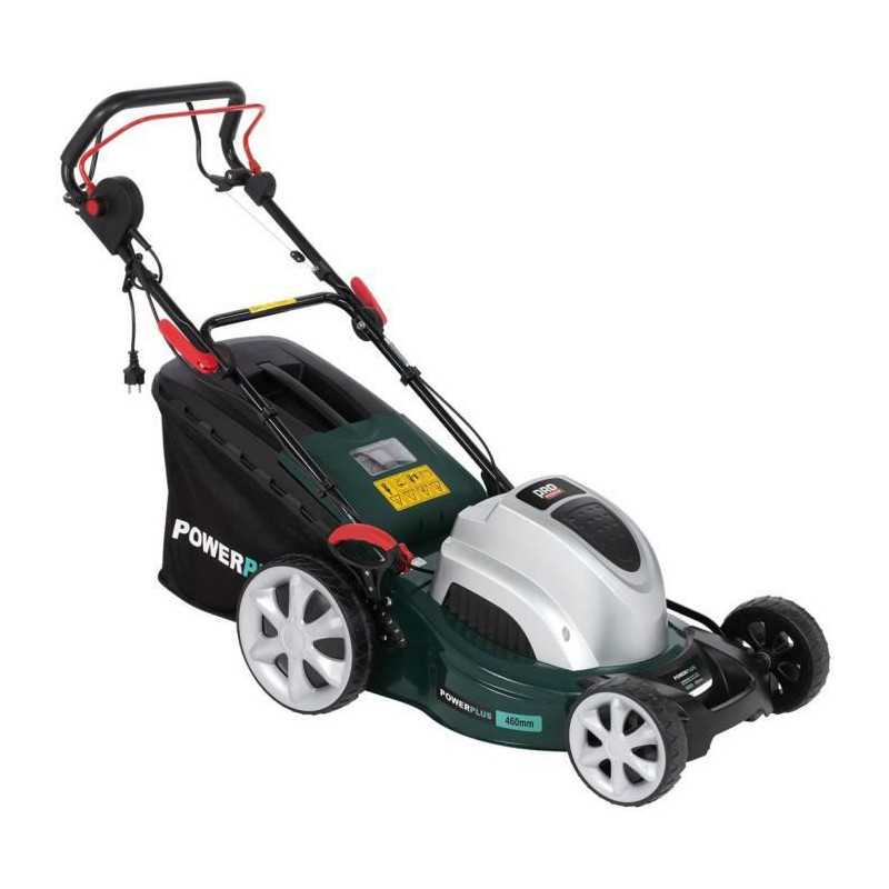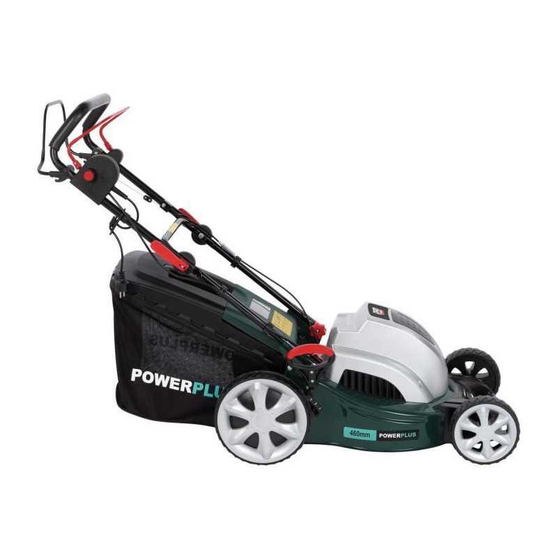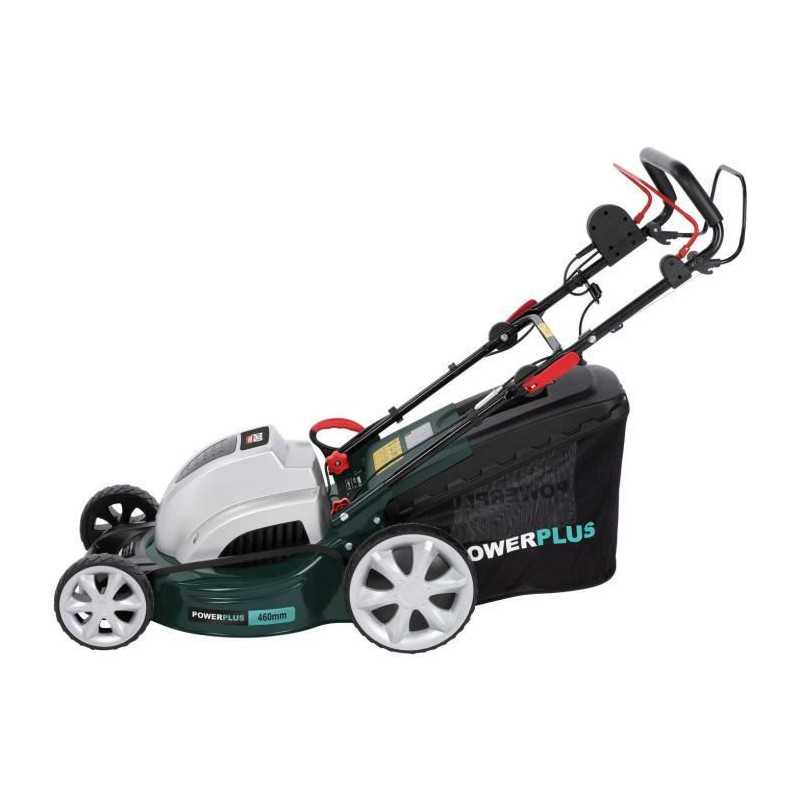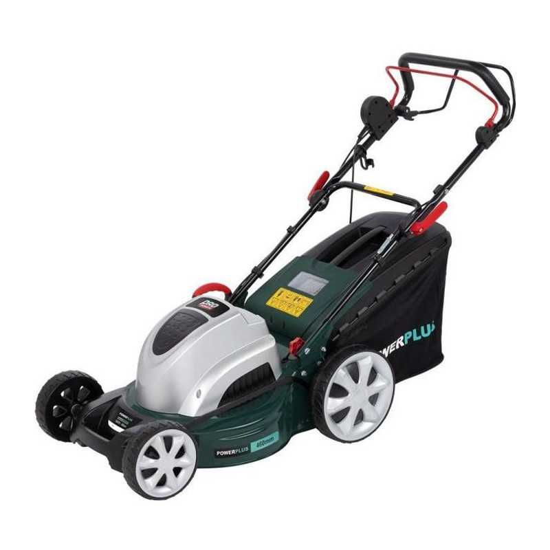 Tondeuse électrique autotractée POWERPLUS - Puissance : 1800W - Largeur de travail : 46 cm - Fonction mulching - Moteur a induction - Fonctions : Ramassage/déjection arriere/paillage - Hauteur de travail ajustable et centralisé : 7 (30-75 mm) - Bac de ramassage : 60 L - Carter en acier - Roulement a billes - Lame : SHARP.