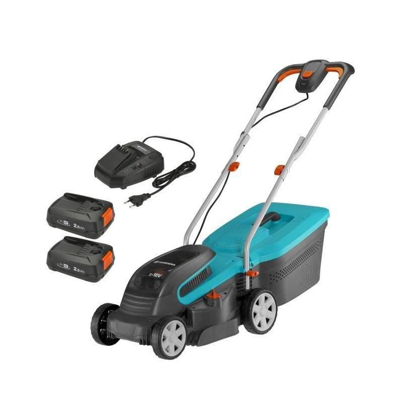 Tondeuse PowerMax 32/36V P4A - Livrée avec 2 batteries Li-ion 18V 2,5Ah PBA 18V/45 et 1 chargeur rapide AL 1830 CV - Insertion des 2 batteries 18V en meme temps - Largeur de coupe 32 cm (pelouses jusqu'a 200 m²) - Bac 30 l - Systeme ajustement centralisé
