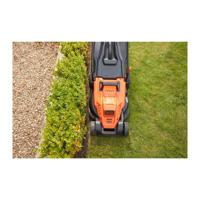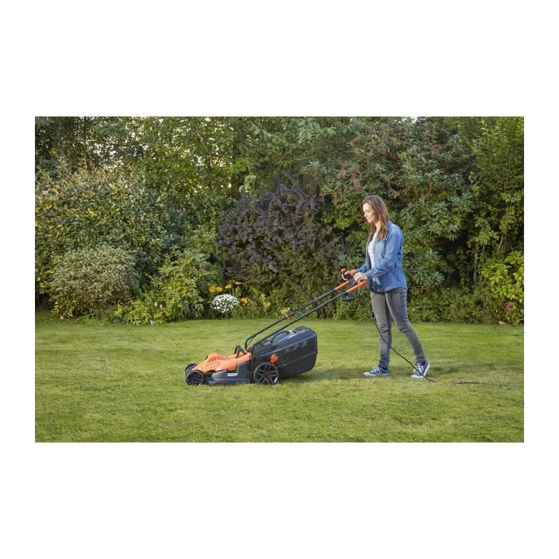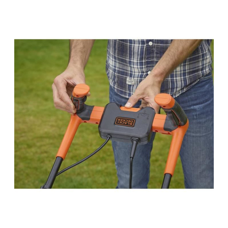 BLACK+DECKER vous présente cette tondeuse électrique performante avec Technologie E-drive qui offre un couple élevé et constant pour une performance de tonte optimisée, y compris dans les herbes les plus hautes ou humides. Confort d'utilisation : grâce a la nouvelle poignée bike avec revetement SOFT Grip pour une prise en main plus confortable et un démarrage en 2 points, et 6 hauteurs de coupe ajustables par levier