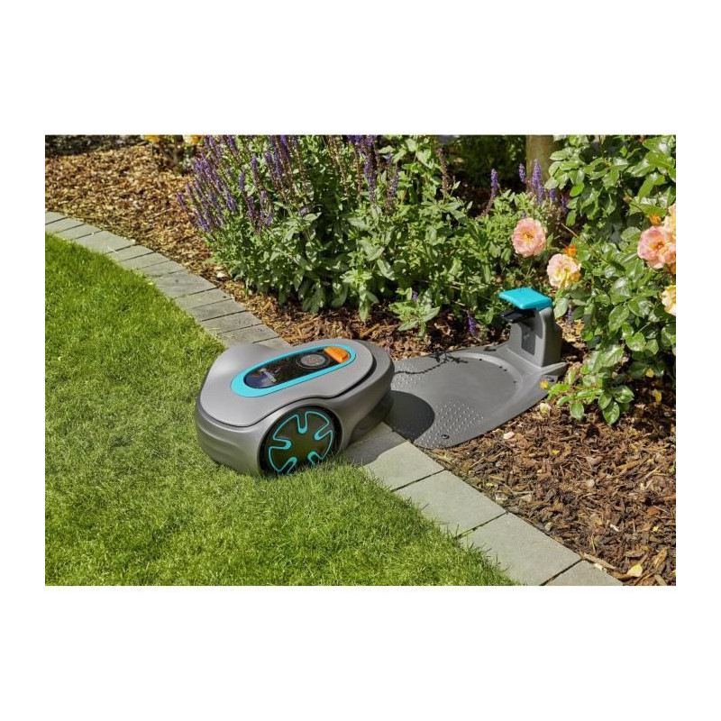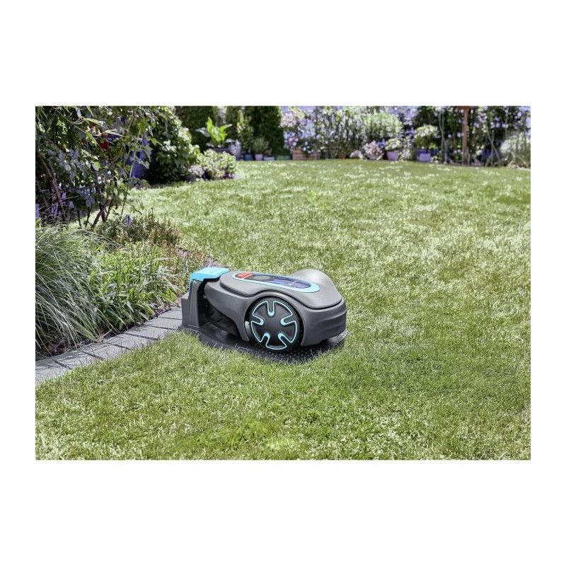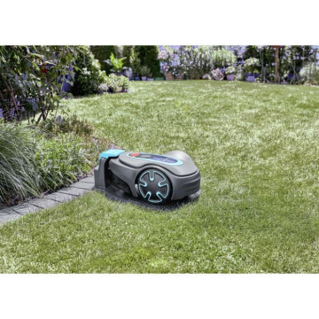 Tondeuse robot SILENO minimo 500m² - Programmation et contrôle tres simple grâce a l'application GARDENA Bluetooth.® - Tond meme sous la pluie et se nettoie au tuyau d'arrosage - Technologies SensorCut, CorridorCut et SpotCut - Compacte et agile grâce a sa roue arriere pivotante - Tres silencieuse