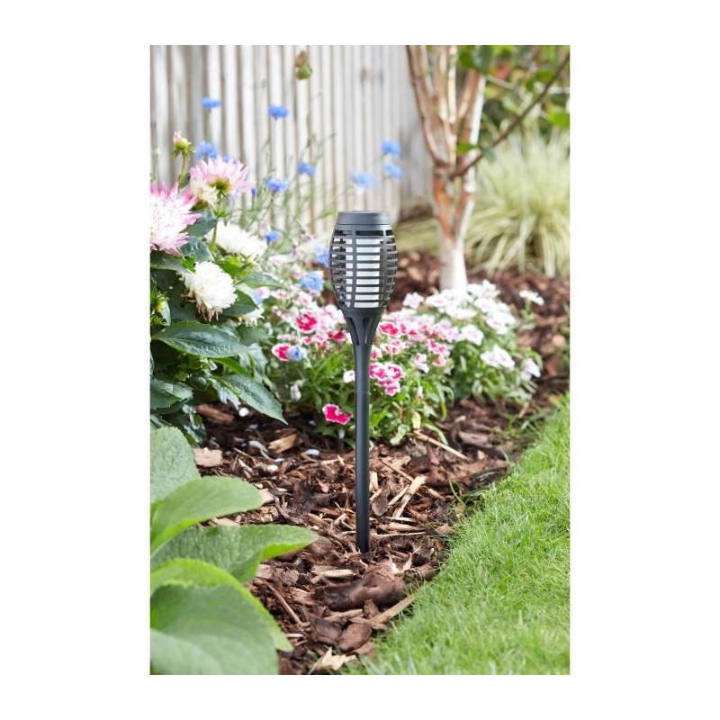 Pack de 5 Torches solaires a planter le long des allées et bordures. Effet flamboyant réaliste. Grâce a la technologie CoolFlame, la torche reste totalement sûre et froide au toucher Idéal pour créer un impact dramatique dans n'importe quel jardin ou espace extérieur. Plastique - 47 x 7.3 x 7.3 - coloris noir