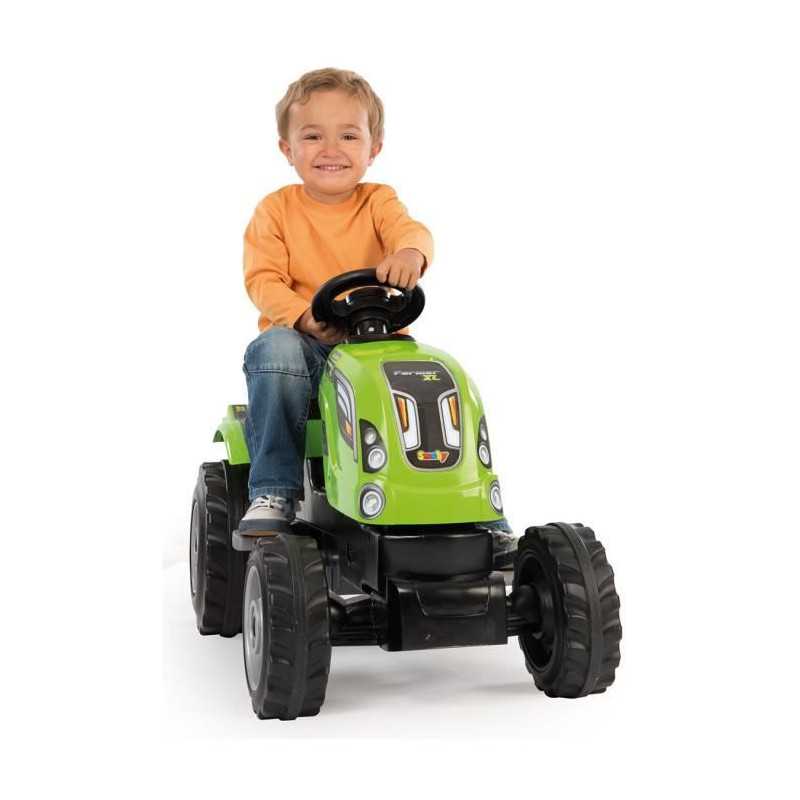 Ajuste ton siege pour etre confortablement installé et pars a l'aventure ! Grâce aux pédales tu pourras facilement te balader. N'oublie pas de te faire entendre avec ton klaxon intégré au volant ! Une petite panne ? Ouvre le capot de ton tracteur pour le réparer !
