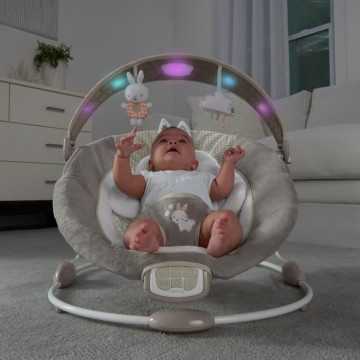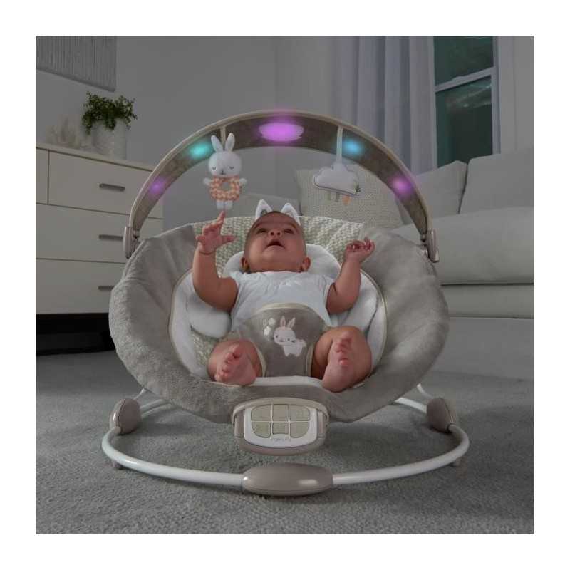 Un transat conçu pour apaiser et réconforter bébé par le toucher, le son et des lumieres ! Ce transat pour bébé décoré avec d'adorables lapins apaise les nouveau-nés pour un moment de détente a la maison ou ailleurs. Un siege berceau profond avec des tissus en peluche douce et un lapin câlin pour prendre soin de bébé.