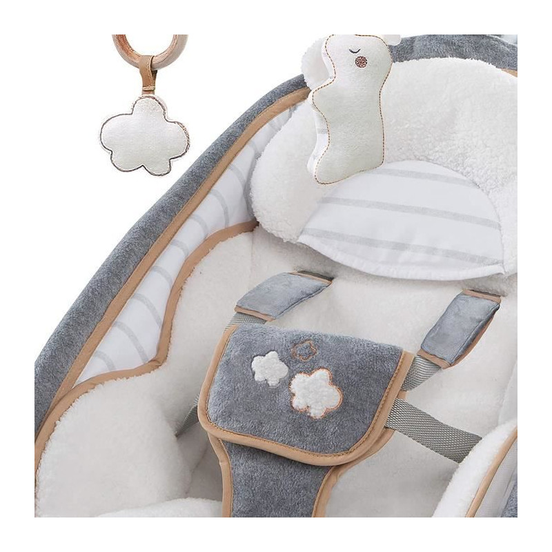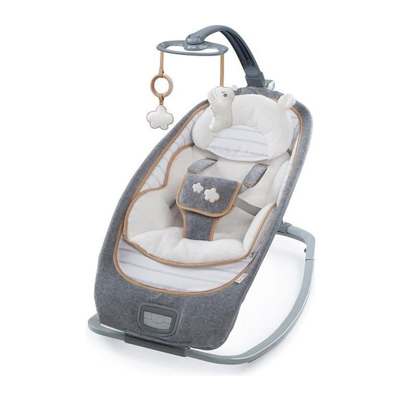 Le transat a bascule pour bébé Bella Teddy de la marque Ingenuity est un transat pour bébé contemporain avec une option d'inclinaison unique en son genre qui offre trois positions tres distinctes pour garder votre bébé a l'aise. Ce siege se balance, mais il se convertit également en un siege fixe avec des vibrations apaisantes, des sons de la nature et de la musique.