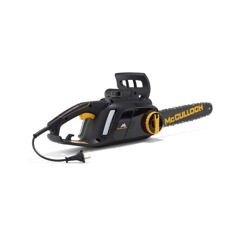 Tronçonneuse électrique - 2000 W - Guide 40 cm - Pas de chaîne 3/8'', jauge 1,3 mm - Poids léger : 3,5 kg - Démarrage instantané - Vitesse de chaîne 13,5 m/s - Lubrification automatique - Réservoir de 0,24 l - Niveau d'huile visible - Crochet de maintien de câble - Double frein de chaîne - Tendeur de chaîne latéral