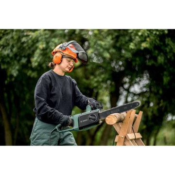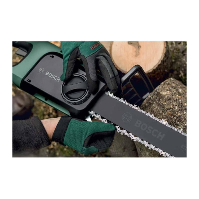 BOSCH Tronçonneuse filaire UniversalChain 40 - 40 cm - Moteur de 1.800 W - Systeme SDS - Systeme SDS Bosch - Vitesse élevée de la chaîne (12 m/s) - Frein de chaîne a réaction ultra-rapide (Quick Stop) - Poignée ergonomique - Griffes de maintien en acier - Grand réservoir d'huile (200 ml) avec indicateur de remplissage.