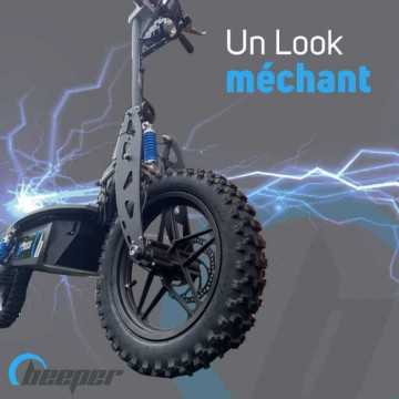 *** La TOUT-TERRAIN ** La trottinette electrique Beeper FX1600-S est LA trottinette tout-terrain ! Gr‰ce a ses pneus gonfles et crantes, elle vous amenera de partout. *** Moteur HAUTE PERFORMANCE 1600W *** Son moteur BRUSHLESS de 1600W peut atteindre une vitesse maximum de 40 km/h (sur voie privee). Sa batterie Lithium 48V 18Ah vous permet de parcourir jusqu'a 40km