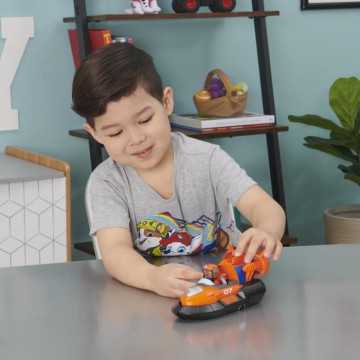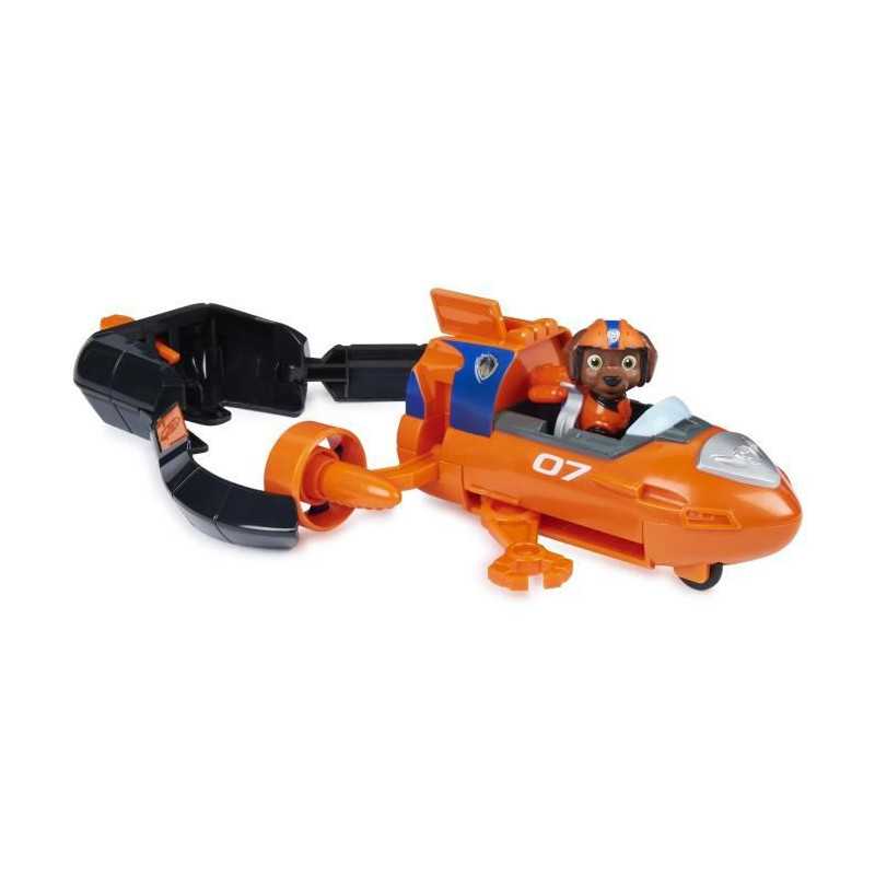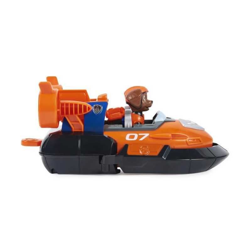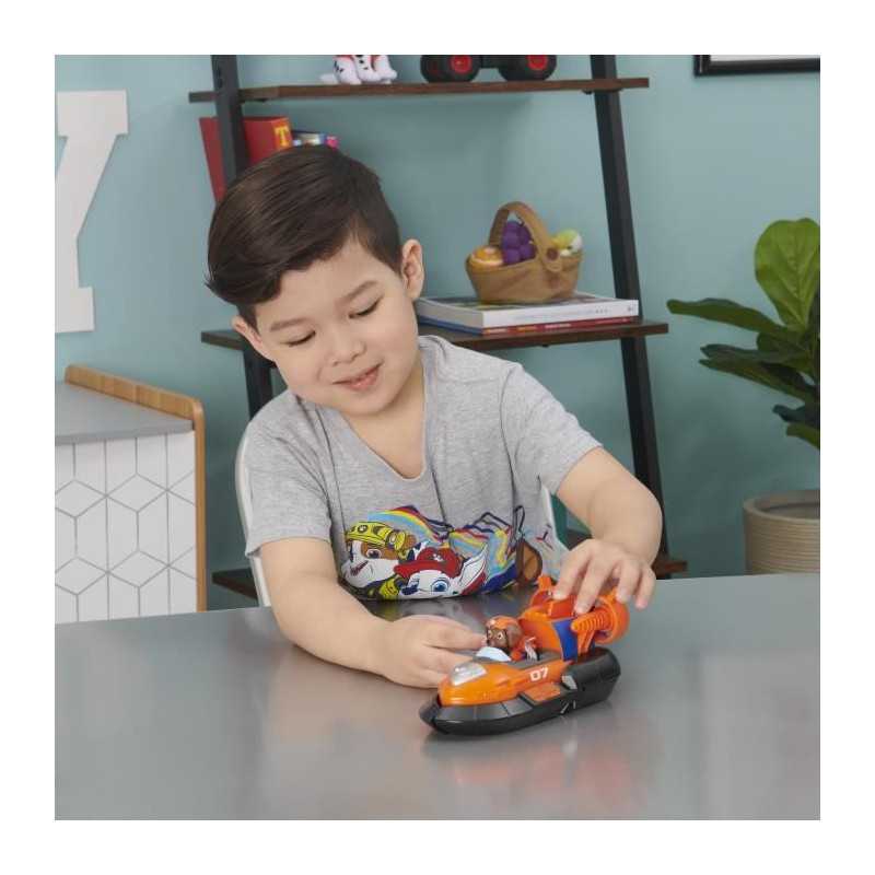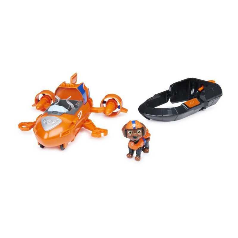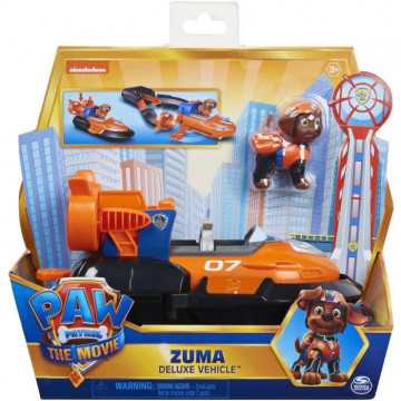Un véhicule officiel de La Pat' Patrouille - Le Film. La réplique officiel du véhicule qui apparaît dans le film. Avec fonction transformation pour partir en mission sauvetage. Véhicule d'environ 15 cm de long. Une figurine amovible de Zuma incluse. Boîte ouverte. A partir de 3 ans.