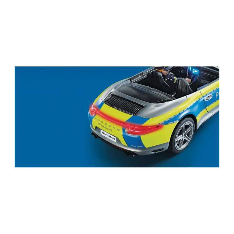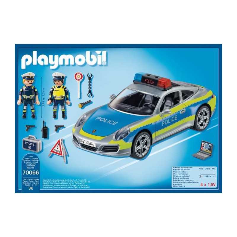 Grâce a la Porsche 911 Carrera, la police peut intervenir tres rapidement. Avec deux policiers et l'équipement pour la circulation routiere. Effets sonores et lumineux (nécessite une pile 1,5-V-AAA non fournie) et de nombreux accessoires. Clignotants avant, arriere et tableau de bord lumineux.
