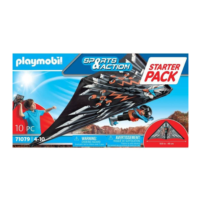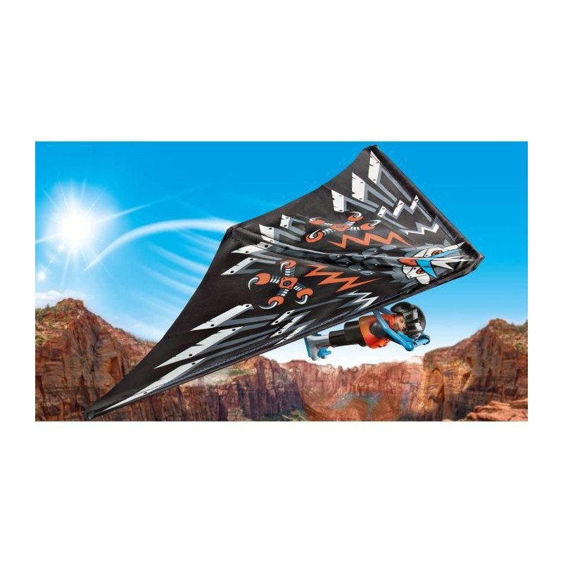 Fendez les airs grâce au deltaplane Playmobil. Pourvu de larges ailes, le deltaplane peut voler. Bien équipé et protégé, le personnage peut battre des records de vitesse et de hauteur. Ce set de jeux peut tout aussi bien convenir a un usage intérieur et extérieur.