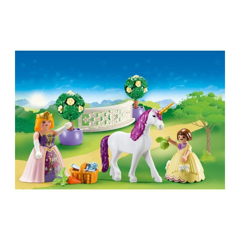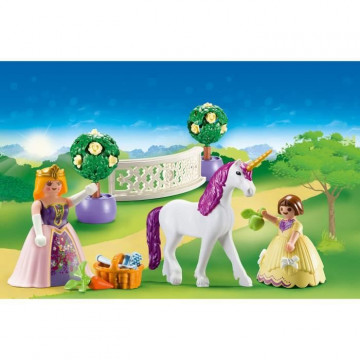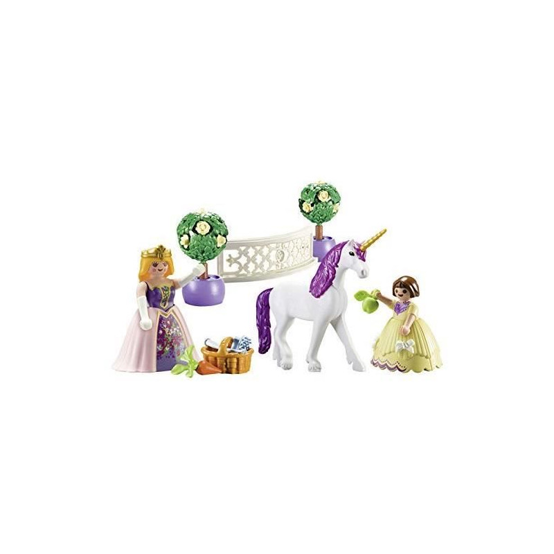 Alors que la princesse et sa petite soeur se promenent dans le jardin, elles font la rencontre inattendue d'une licorne. La majestueuse licorne au crin violet et a la corne dorée vient les saluer d'une révérence. Les princesses s'approchent doucement pour ne pas l'effrayer et lui offre des pommes en guise de goûter.