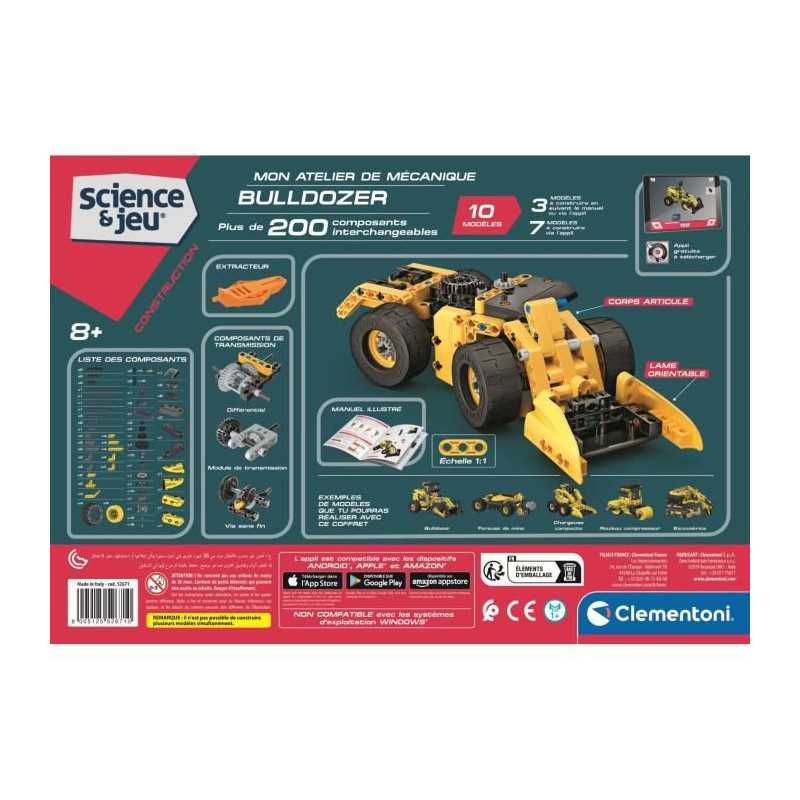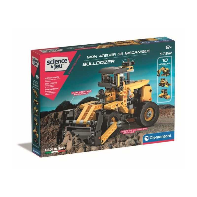 Un coffret pour construire un incroyable bulldozer et 9 autres modeles d'engins de chantier ! Avec plus de 200 composants : roues dentées plates et coniques, crémaillere, différentiel, vis sans fin, pneus crantés, barres, panneaux...