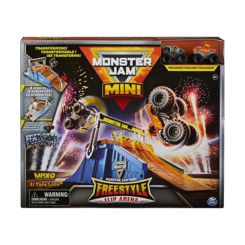 Un univers de jeu complet pour reproduire les cascades du show Monster Jam. Permet de ranger 12 véhicules Mini, 2 véhicules exclusifs inclus. Des 3 ans.