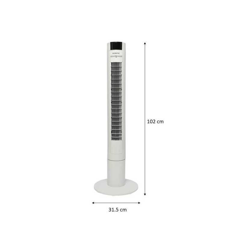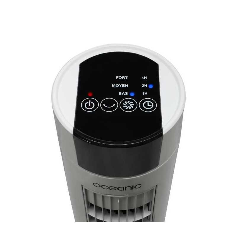Oceanic Ventilateur colonne/tour - Hauteur 102 cm - Puissance 45W - 3 réglages de vitesse pour une brise Faible, Moyenne et Rapide - Oscillation automatique avec un angle de 80° - Minuterie 7H - Télécommande pouvant activer toutes les fonctions - Mode de fonctionnement silencieux disponible