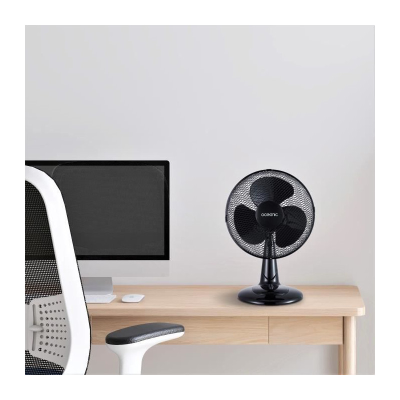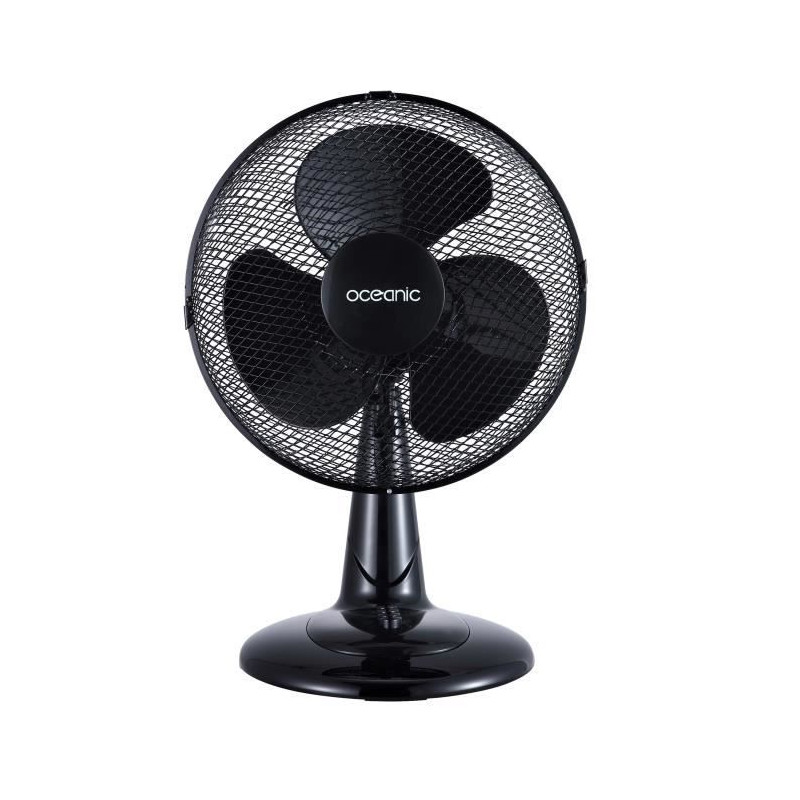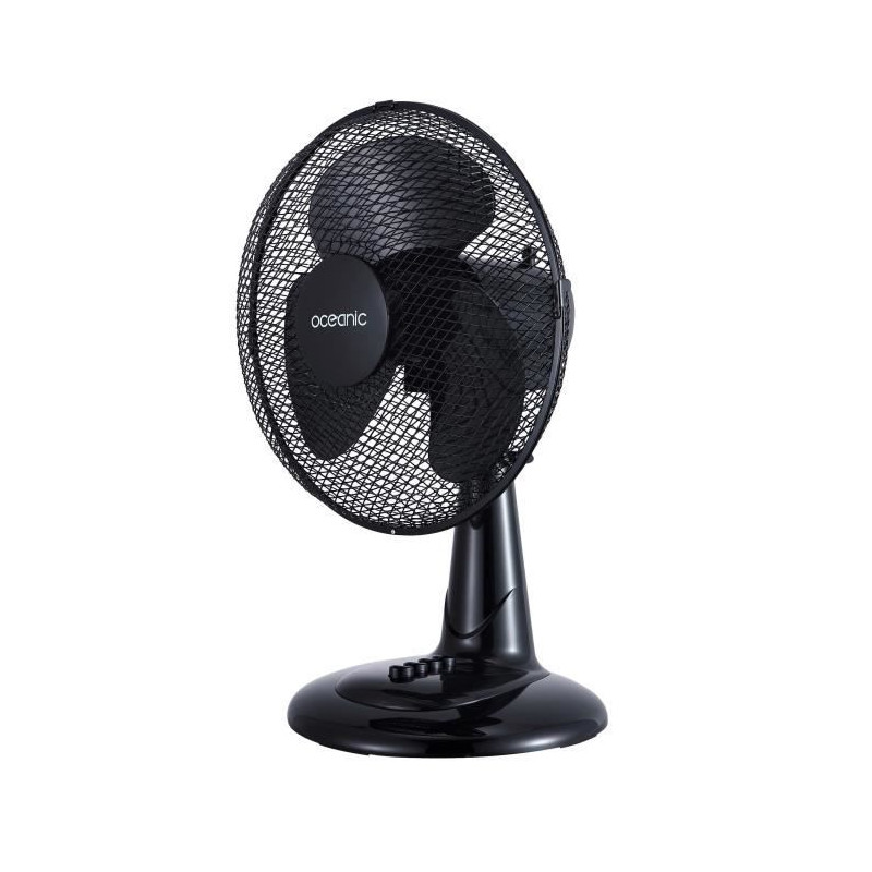 OCEANIC Ventilateur de table - 3 vitesses - Puissance : 40 W - Diametre : 30 cm - Contrôle de l'oscillation - Oscillation : Angle de 70° - Grille de protection - Pression sonore : 52 dB - Câble d'alimentation : 150 cm - Coloris : noir