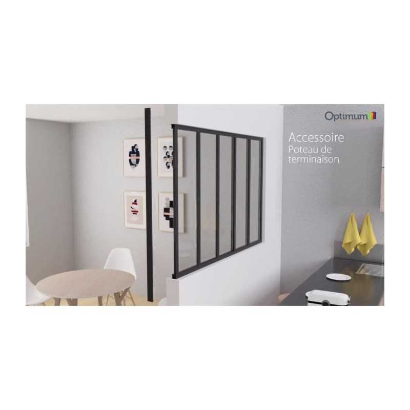 Poteau de terminaison pour verriere Optimum. Profil permettant une finition parfaite d'une verriere avec côté apparent. Hauteur 1150 mm. Coloris : noir mat sablé (identique a la verriere Optimum).