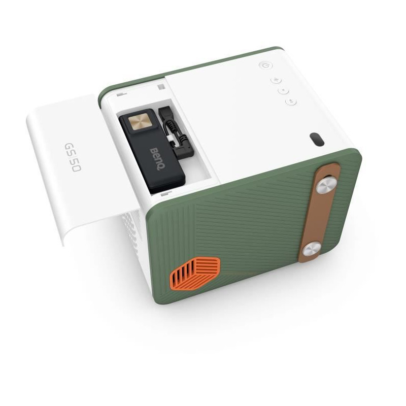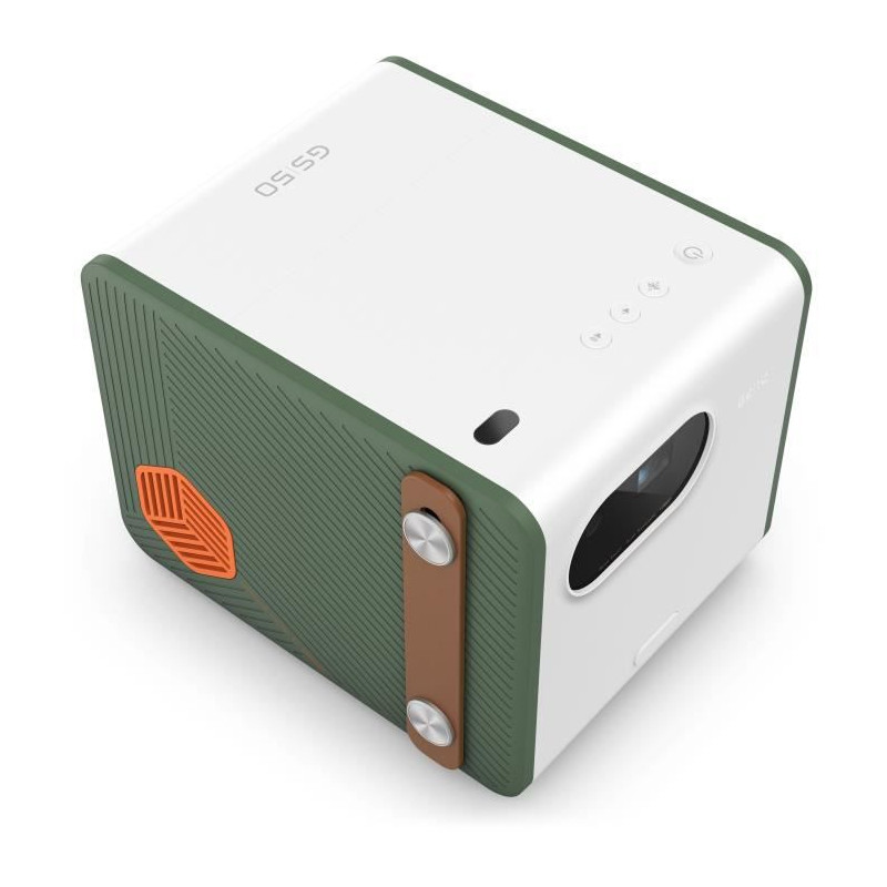 BENQ GS50 - Vidéoprojecteur Full HD (1920x1080) - 500 Ansi Lumens - Bluetooth, HDMI, USB - Haut-parleurs intégrés 2x5W - Autonomie 2h30 - IPX2 et résistance aux chutes jusqu'a 70cm - Capteur de luminosité et de proximité - Projection sans fil compatible Chrome Cast - Application BenQ Smart Control