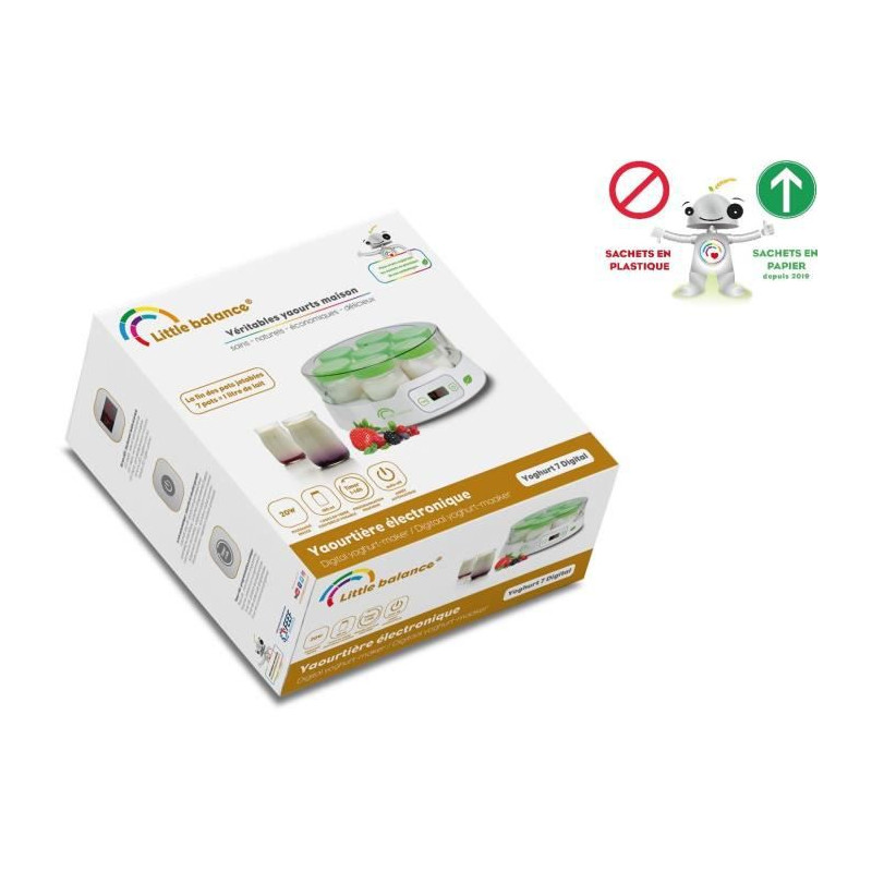 LITTLE BALANCE 8235 Yaourtiere 7 pots, Pots yaourts en verre 190 ml, Timer jusqu'a 14h, Arret automatique